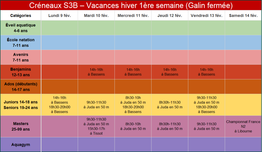 Créneaux vacances hiver